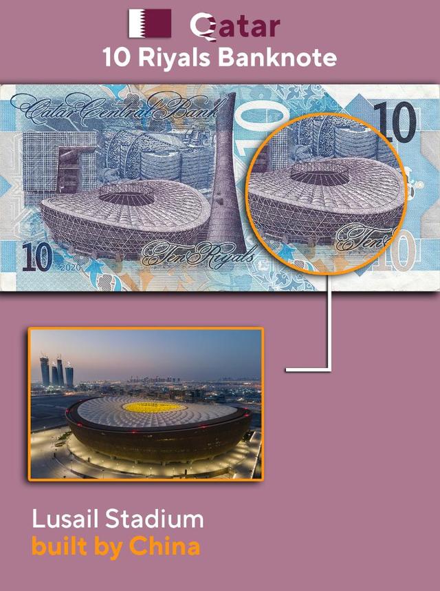 ↑卡塔尔面额10里亚尔纸币——卢赛尔球场