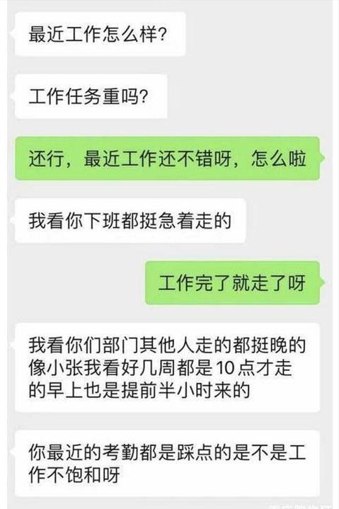 孙女士说,“我们公司是上午九点半上班,下午六点下班,那天也没发生什么特别的事情,我就像往常一样,到点就下班走了,之后领导给我发消息,说让我以后不要六点整点走,我就觉得有点离谱。”