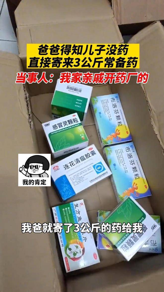 从拍摄的视频画面显示,这位爸爸可真是够豪横的,孩子远在异乡买不到药于是便直接寄了3公斤药物过来,其中不仅有一些常见感冒药、退烧药等,更是连最近炒作热度较高且较稀缺的连花清瘟、布洛芬也寄来了十几盒,场面瞬间惊呆众人。