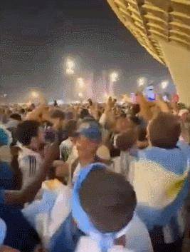 这是卡塔尔卢赛尔球场外的阿根廷球迷。看完比赛,他们一起载歌载舞,喜庆如节。