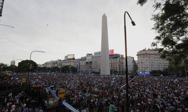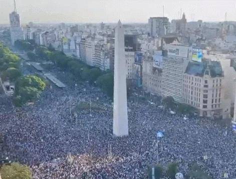 此外,全球球迷也为阿根廷晋级世界杯决赛而欢呼雀跃。无数球迷聚集在阿根廷的大街小巷、乡镇村,见证国家队时隔8年重返世界杯决赛。其中,首都布宜诺斯艾利斯在地标方尖碑附近挤满了庆祝的阿根廷球迷。
