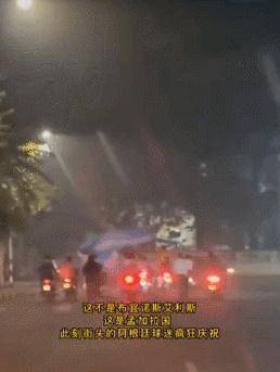 这是孟加拉国的街道。许多球迷在深夜骑着摩托车,一边按着喇叭,一边拉起阿根廷国旗庆祝。这太疯狂了。