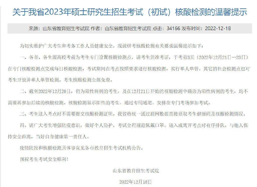为切实维护广大考生和考务工作人员健康安全,现就研考核酸检测有关要求温馨提示如下: