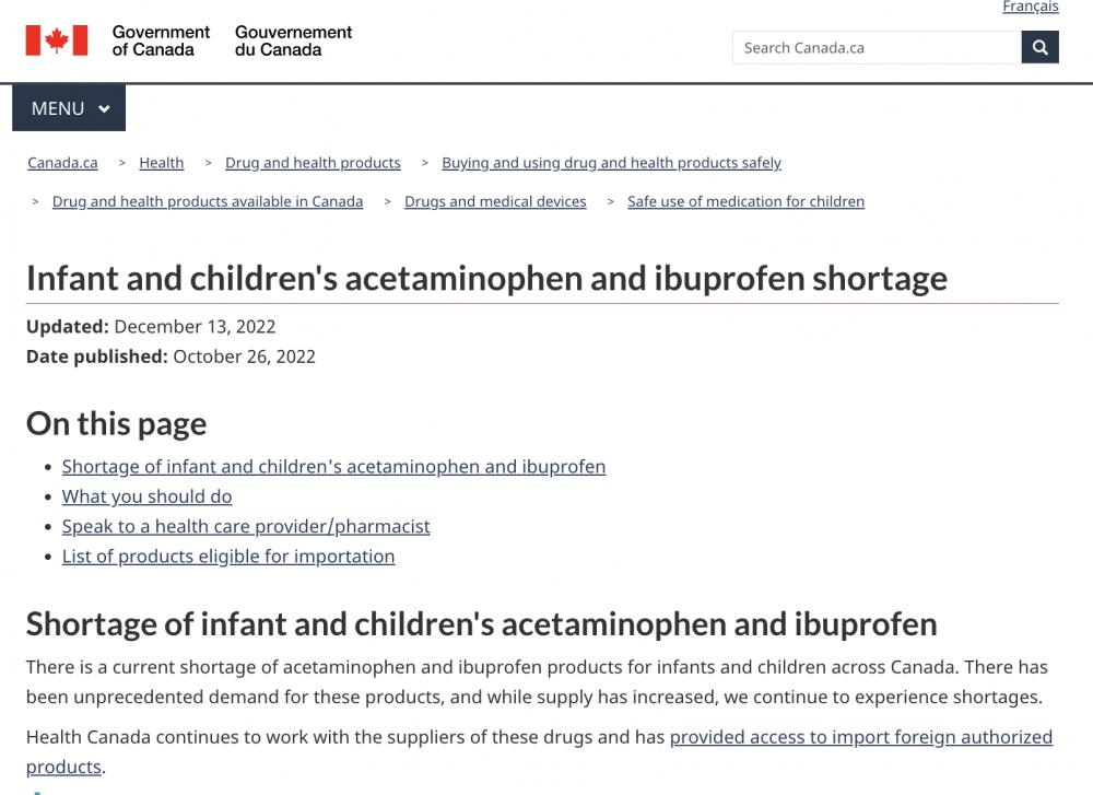 美国的邻国加拿大同样急缺儿童退烧药。此前10月,加拿大政府在官网发布消息,称加拿大各地缺乏婴儿和儿童所需的对乙酰氨基酚和布洛芬产品。“(全国)对此类产品的需求前所未有地旺盛,虽然供应有所增加,但仍然面临短缺。”