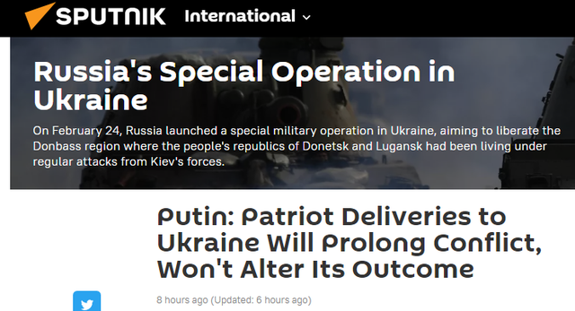 “我们的对手认为这是一种防御性武器。好吧,我们会记住这一点。(我们)总能找到解药的,”普京当天对记者说,美国交付给乌克兰“爱国者”防空导弹系统将是“徒劳的”,这只会拖延冲突,不会改变结果。