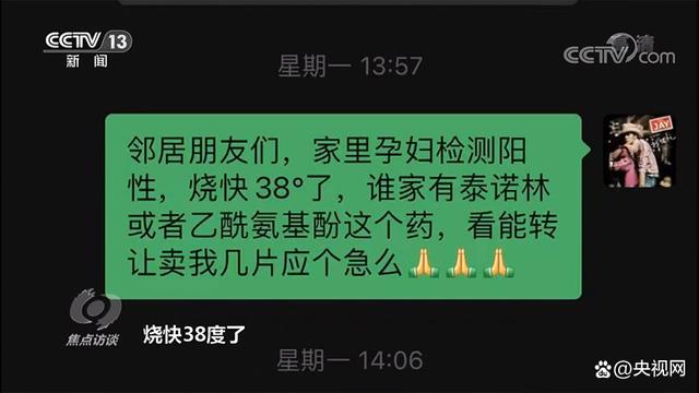 北京通州区运河湾小区居民周镜宇:“周日晚上的时候,烧过了38度。打电话问医生,医生建议先物理降温,如果一晚上过去温度还没有降下来的话,就需要吃退烧药了,推荐了孕妇能吃的对乙酰氨基酚泰诺林。”