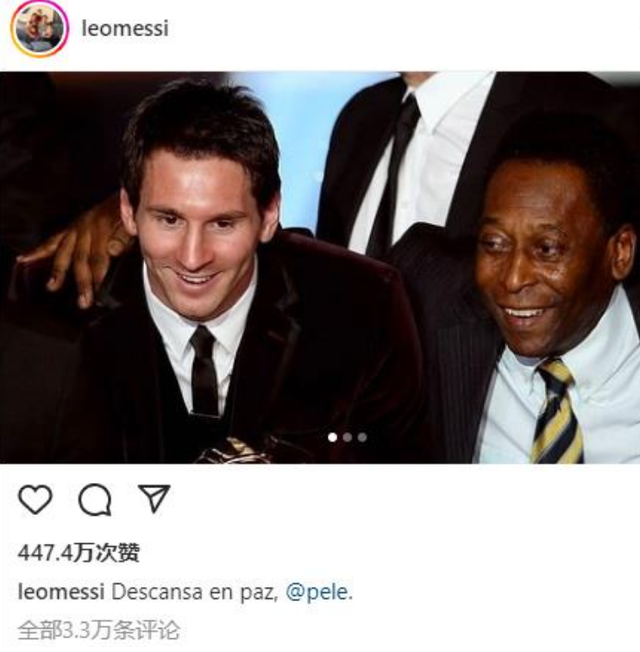 贝利个人社交媒体账号用葡萄牙语和英语发布“球王”去世的消息,写道:“球王贝利今天安详地离世了。爱与鼓舞人心,是他整个人生的标志。埃德松(贝利原名)用他在体育领域的天赋终止过一场战争,他前往全世界参加社会活动,并传播着他心中坚信的、解决所有问题的关键——那就是爱。贝利的故事在今天,成为未来几代人的宝贵遗产。爱,还是爱,一直去爱,直到永远。”
