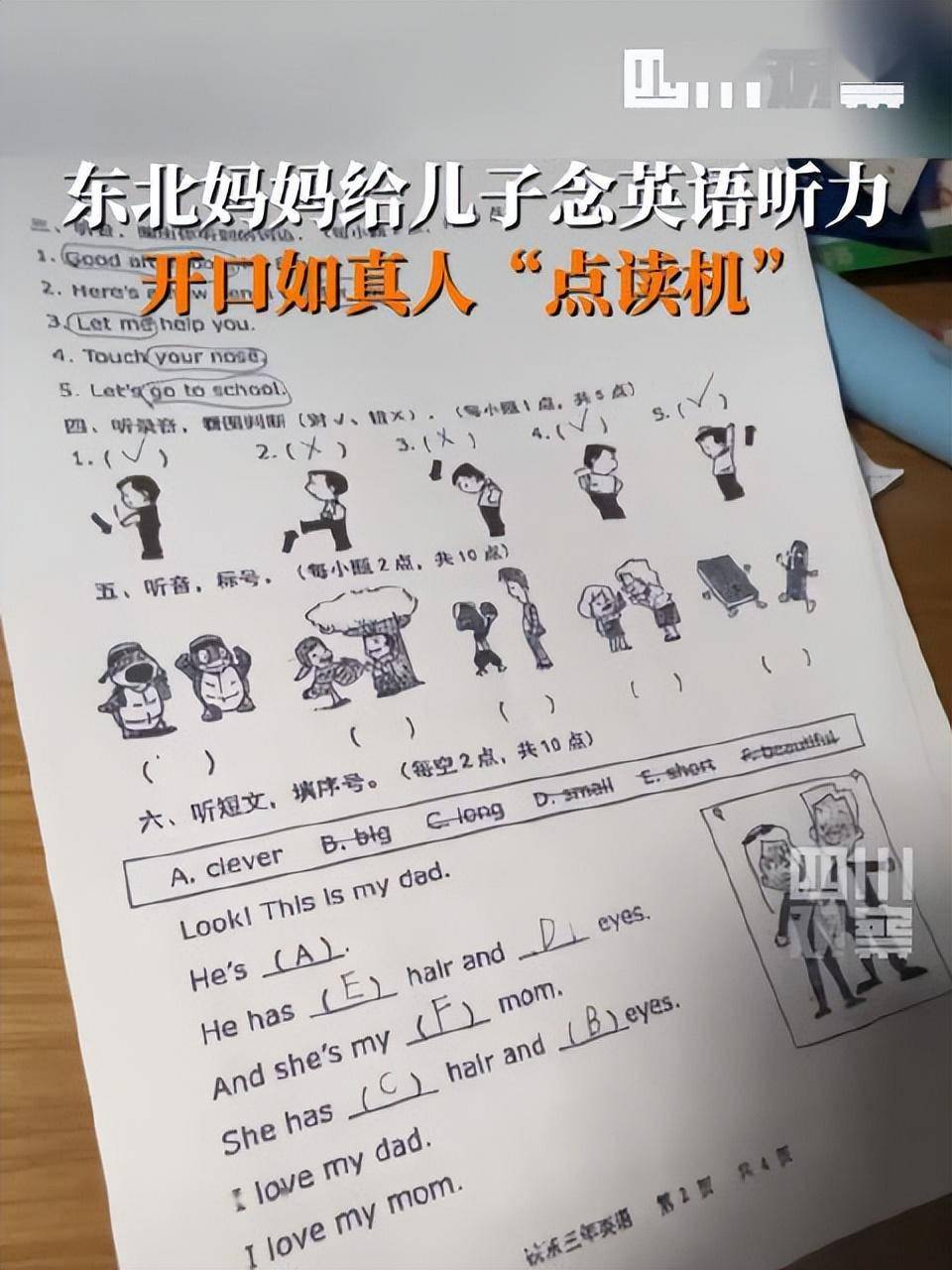 近日,辽宁鞍山。陶女士给三年级儿子读英语听力,开口仿佛考试原声,陶女士介绍,她是一名英语老师,口语主要是通过多年的练习与模仿形成的。网友:#一开口就感觉在参加英语听力考试#,紧张感拉满!