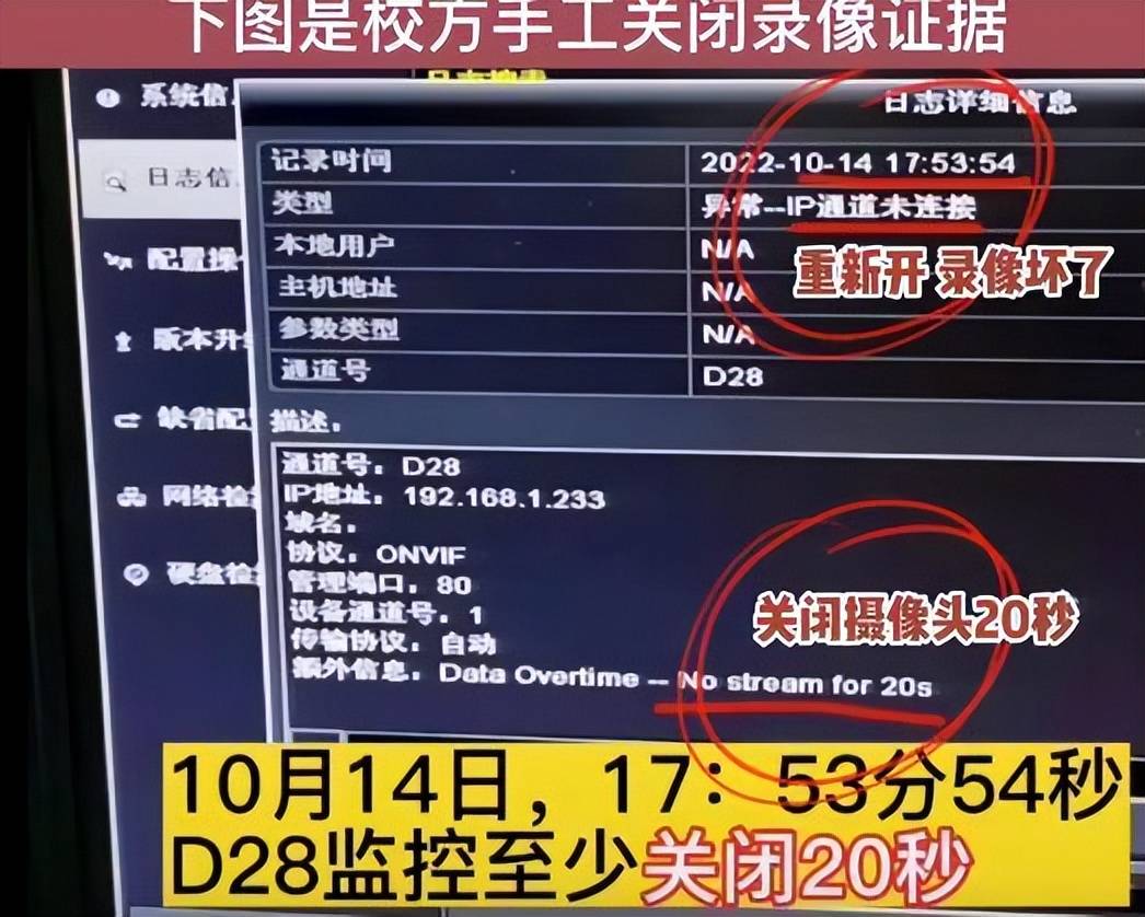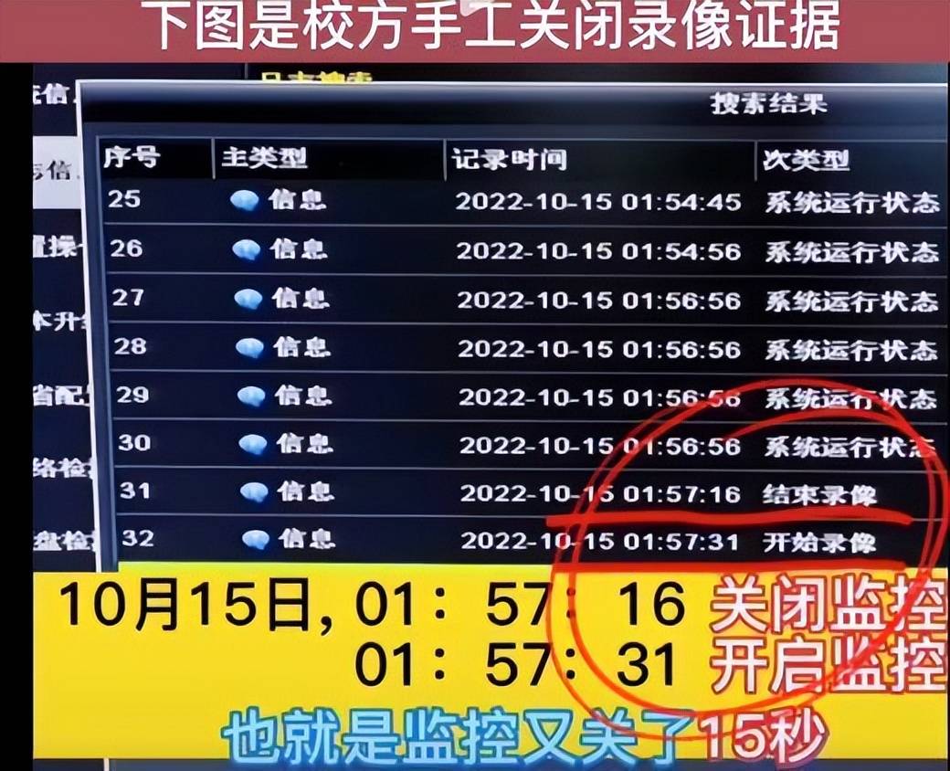 国内学校用的监控正常都是能保留一个月的,比较巧的就是这件事情正好到了一个月后才被正式翻出来,更巧的是校方还说那天学校里好几个监控坏掉了,只能说校方肯定在瞒什么东西。还有到底是谁提出的他出门带了录音笔也是个问题,甚至有可能是故意把大家往录音笔上面引导