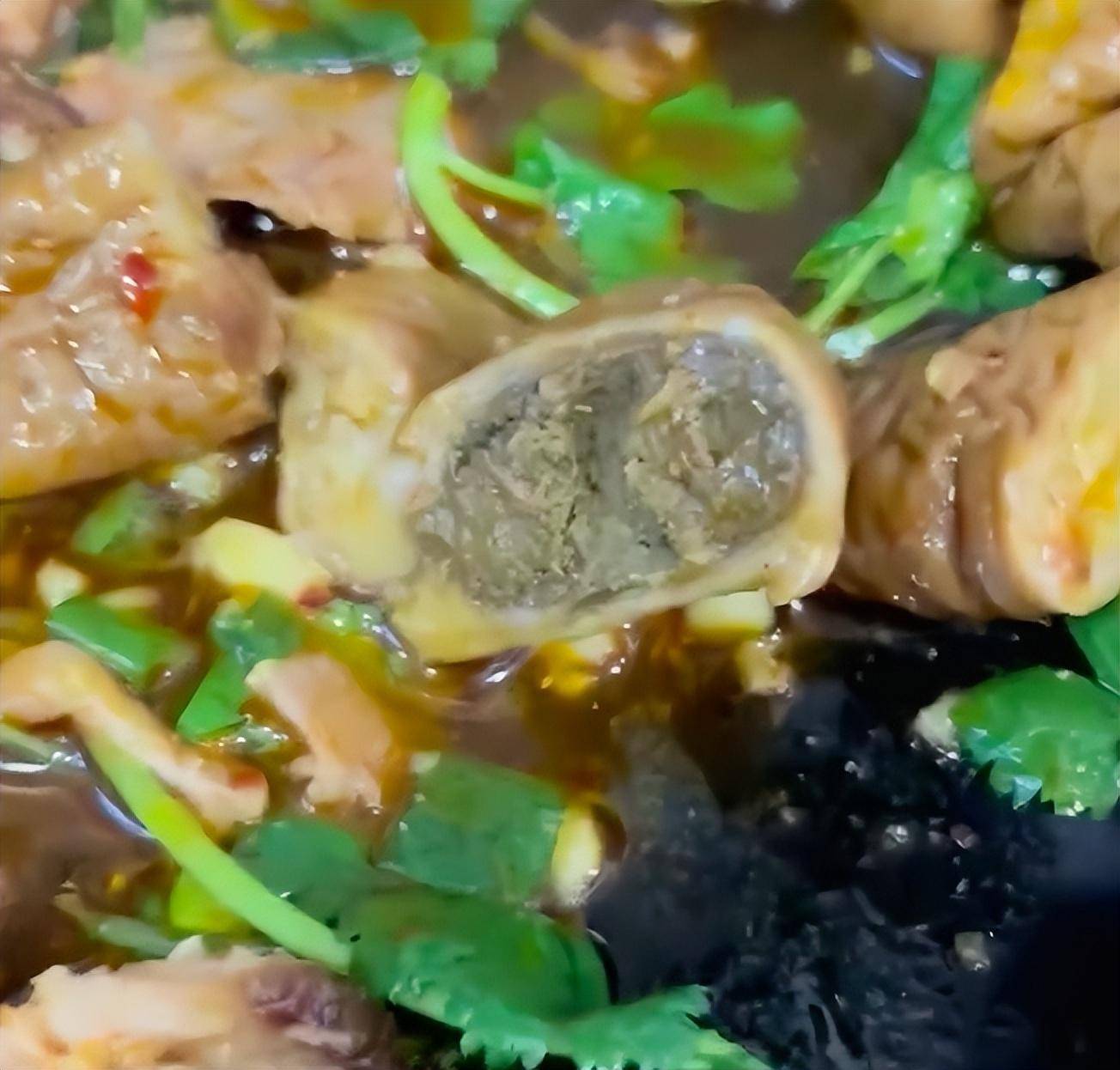画面显示,一盘猪大肠里有一块疑似有粪便,一名女子惊讶地称:“感觉和屎一样。”