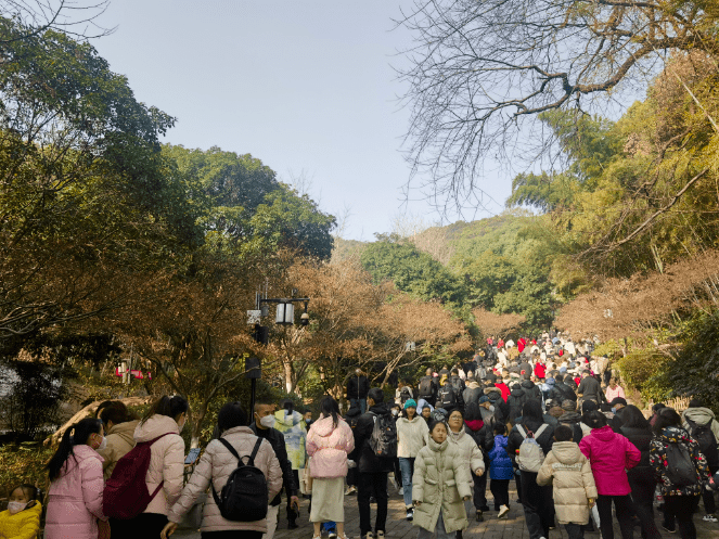 1月24日,大年初三,气温上升,麓山景区迎来了新年首波客流高峰。组图源自周宁。