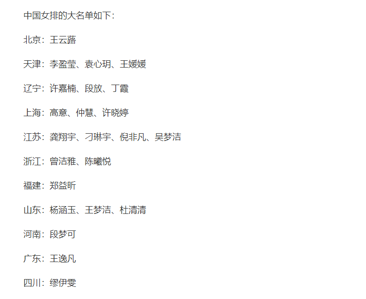 参加本次集训的23人中有袁心玥和丁霞两位老将,也有李盈莹,龚翔宇等参加了去年世锦赛的球员,同时还有许晓婷,仲慧,段梦可,缪伊雯等近些年在排超联赛中表现出色的球员,这些年轻球员都是首次入选中国女排集训队。虽然蔡斌启用了多位新人,但是依旧引起了一些争议,其中就有人质疑张世琦为什么没有进入集训名单,要知道张世琦在世联赛中的表现还比较不错,不管是进攻,还是防守都展现出了不俗的实力,不过张世琦并没有进入本次集训名单,此外排超联赛的最佳自由人王唯漪也无缘本次集训,虽然王唯漪上个赛季的表现很不错,但是考虑到王唯漪已经27岁了,无缘本次集训也算说得过去。
