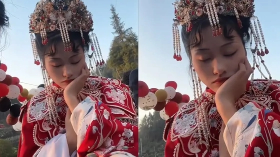 2月1日,湖北恩施。张女士发视频称,她结婚时坐在婚宴上睡着了,全然未被周围嘈杂的环境影响。张女士称,她当天凌晨3点休息,4点就起来了,很疲惫,后来闻到饭香才醒来。
