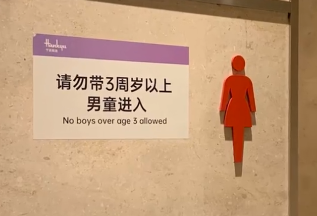 2月1日,在浙江宁波的一家商场女厕门口,有网友发现贴着一张标语:“请勿带3周岁以上男童进入”。随即,此事在网上引发争议。有网友觉得,3岁小孩不太会自己上厕所,年龄太小可能会遇到危险,这种标语对单独带娃出门的妈妈并不友好。也有网友认为,希望这种标语能早点普及。对此,商场工作人员回应称,从商场开业就有这个标语,很多顾客反馈觉得四五岁的男孩进去不太合适,就做了这个规定。