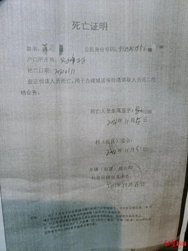 让蒋女士气愤的是,父亲明明活得好好的,这些年还在外面打工,为何会无缘无故出现一张“死亡证明”?蒋女士说,父母养育了他们三姐弟,即便父亲真有什么事情需要签字,儿女也可以直接签字。