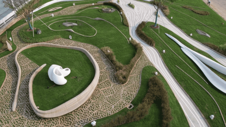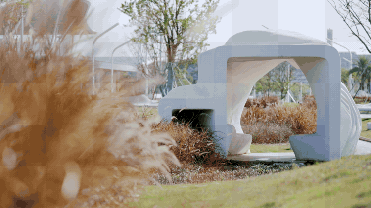 2024年,深圳3D打印公园落成,地形高低起伏,座椅都是流线型的,就像从地面直接“生长”出来一样。一组组曲线,就像形成了山谷、溪流一样,模拟的都是自然形态。