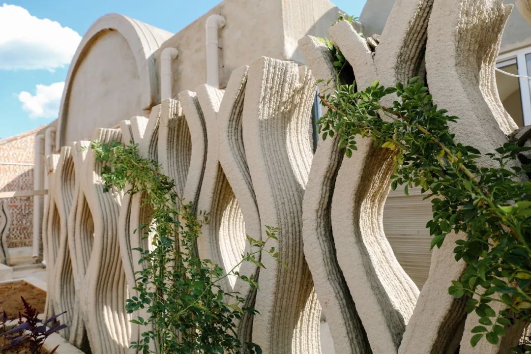 Casa Covida,由三个圆柱形建筑体组成,坐落在科罗拉多州的沙漠中。住宅的土坯墙由机械臂3D打印而成,材料是当地砌墙时常用的传统配方,由沙子、淤泥、粘土、水以及稻草混合,后经阳光曝晒而成。