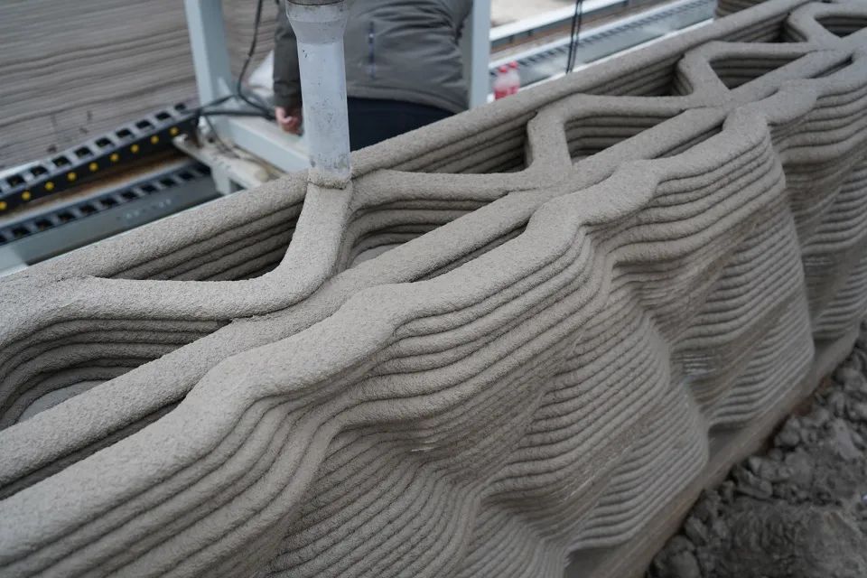 打印材料主要是聚乙烯纤维混凝土,外加添加剂,是团队自主研发的新型复合材料
