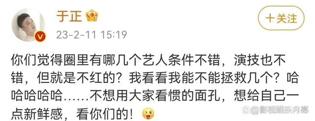 最近这些日子,他还特意发文跟大家说,认为圈里有几个艺人的颜值、条件不错,同时演技更加不用多说,但为什么一直都不红的,所以他就想自己拯救几个,顿时评论区变成了菜市场一样热闹了起来。