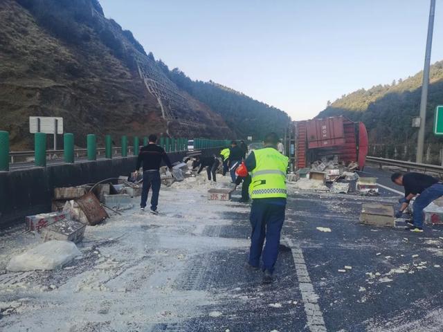 货车侧翻7吨臭豆腐横撒高速