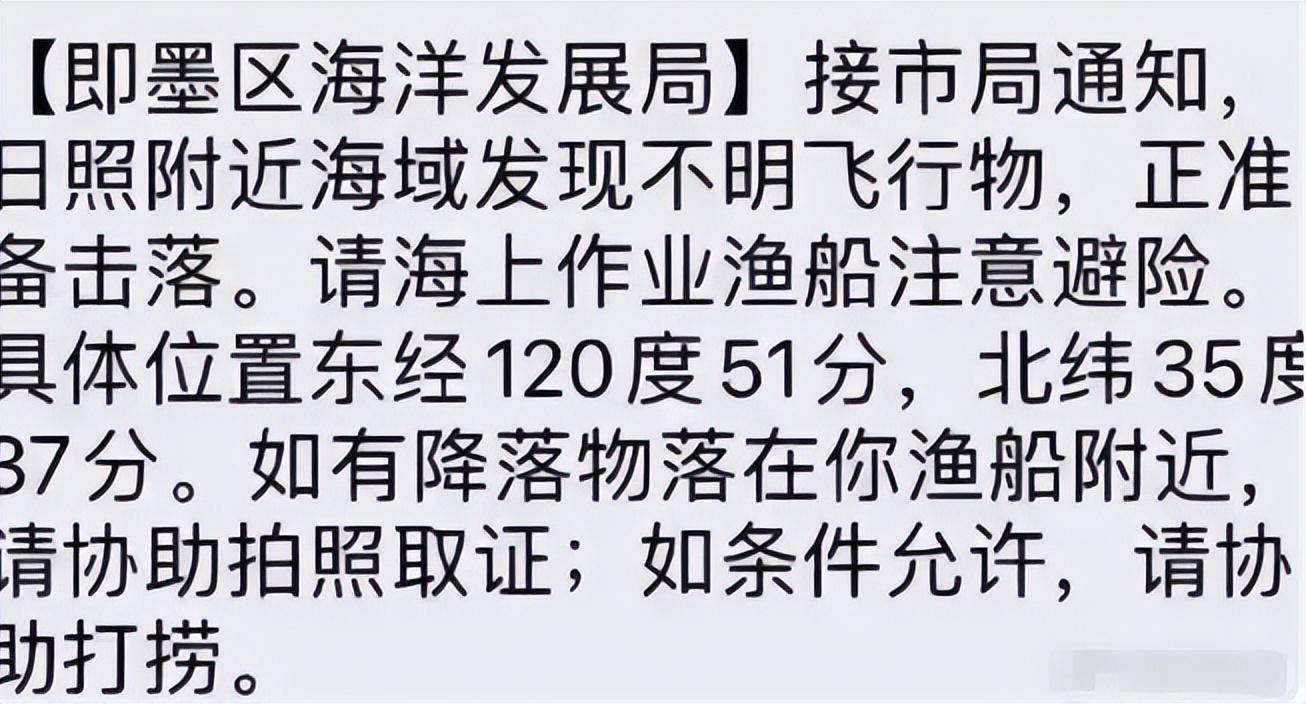 在美国近日多次宣布击落所谓“进入领空的不明飞行物”后,中国官方突然释放了一则重磅新闻。据澎湃新闻报道,青岛即墨区海洋发展局发布通告称,“日照附近海域发现不明飞行物,正准备击落”。该通告在提示海上作业的渔船注意避险的同时,还提到“如条件允许,请协助打捞”。