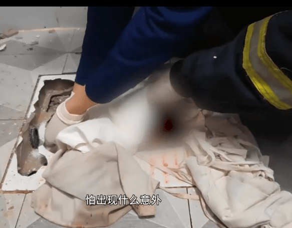 情况十分危急,于是紧急拨打119请求消防人员的救助。情况危急,消防员火速赶至现场,用毛巾等柔软布料包裹好婴儿,防止婴儿被刮伤,然后用工具将排污口周围水泥敲碎。经过50分钟左右救助,婴儿成功被救出,目前呢婴儿健康良好,正在医院治疗观察。