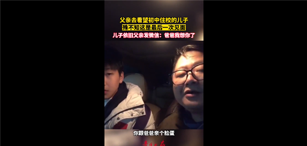 近日,网上一段视频,让不少人泪目。湖北武汉一位爸爸去看望13岁住校的体育生儿子,视频显示,爸爸和儿子互相亲脸,还问儿子“想爸爸还是妈妈”,画面温馨,却不料这幸福的相处却是父子俩见的最后一面。