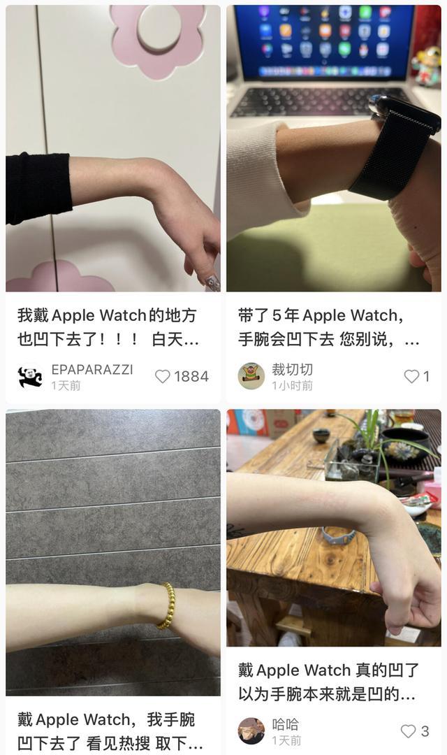近日,多名戴过苹果手表(AppleWatch)的网友在小红书、百度贴吧等社交平台发文抱怨:佩戴AppleWatch的手腕位置有凹陷。没想到这些抱怨引发热议,多名网友看后留言“笑死,我跟你一模一样”“我也是,摘下来几个小时了坑还在”。部分网友还称,相关部位出现疼痛症状。