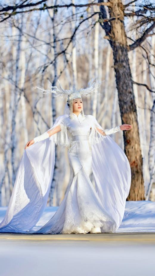 日前,在黑龙江塔河县,当地文旅局局长都波身着一袭白裙,在零下 20 度的天气里,展现鄂伦春民族风情,为家乡代言。