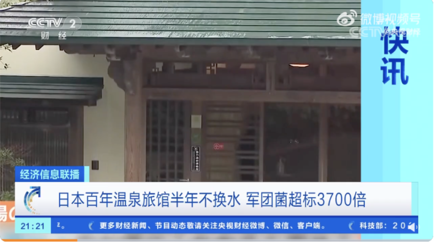 日本西部福冈县一家老字号温泉旅馆在卫生突击检查中被发现,大浴池一年竟然只换两次水,军团菌含量超标3700倍。