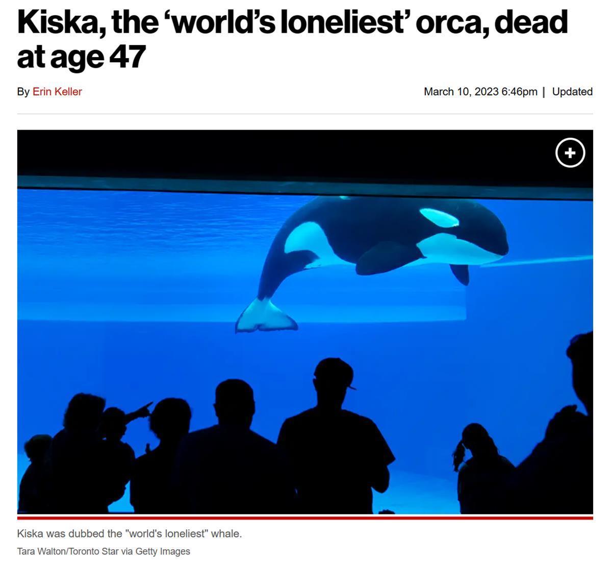 世界上最孤独的鲸去了“海洋天堂”。据《纽约邮报》报道,当地时间3月10日,被鲸鱼保护项目称为“世界上最孤独的鲸”基斯卡在加拿大安大略省的海洋公园内去世,享年47岁。