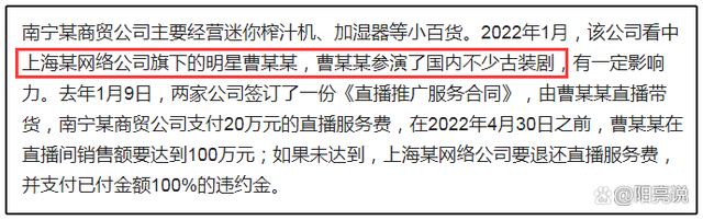 那么,我们再继续往下看,网上曝光的曹姓明星的合同甲方是南宁某某公司,至于乙方,隐约还是能够看到开头第一个字是赤,后面则是某某(上海)有限公司。毫无疑问,这家公司大概率就是赤度企业发展(上海)有限公司了。