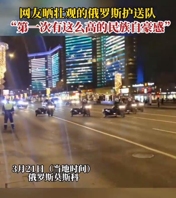 当地时间3月21日,网友拍下壮观的俄罗斯护送队,当五星红旗出现时,民族自豪感从心中升起。