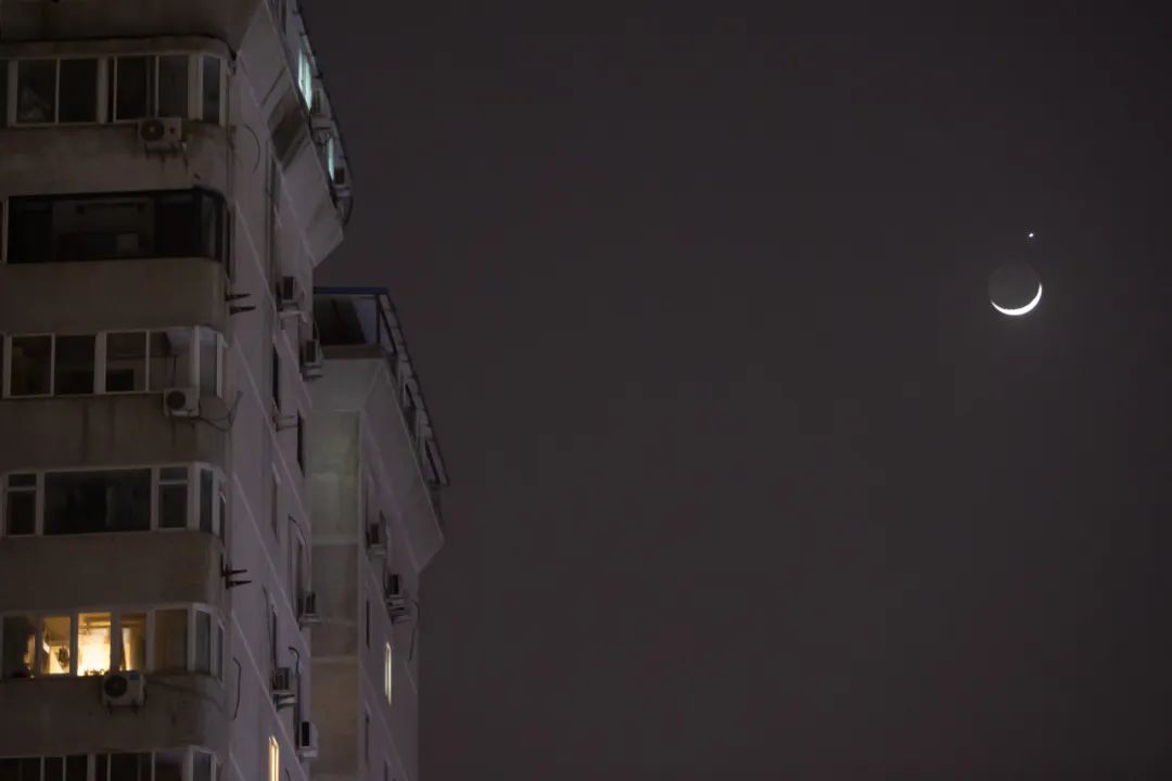 记者从北京天文馆了解到,当视直径大的天体挡住视直径小的天体,称之为掩。本次掩星开始时,金星会从月亮的暗边缘被掩盖,消失一阵后,再从月亮的亮边缘复现。