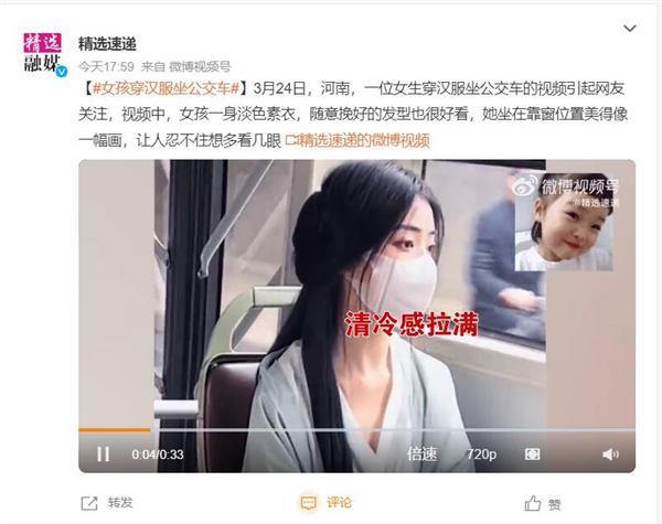 3 月 25 日消息,河南一位女生穿汉服坐公交车的视频引起网友关注。