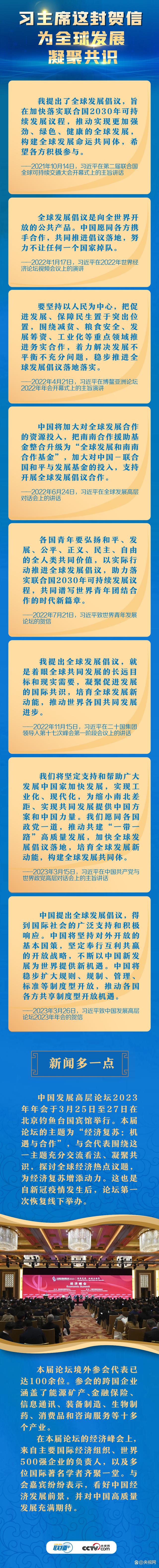 3月26日,中国发展高层论坛2024年年会在北京开幕,主题为“经济复苏:机遇与合作”。习近平主席向中国发展高层论坛2024年年会致贺信。他指出,中国提出全球发展倡议,得到国际社会的广泛支持和积极响应。
