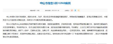 广东中山报告1例H3N8病例