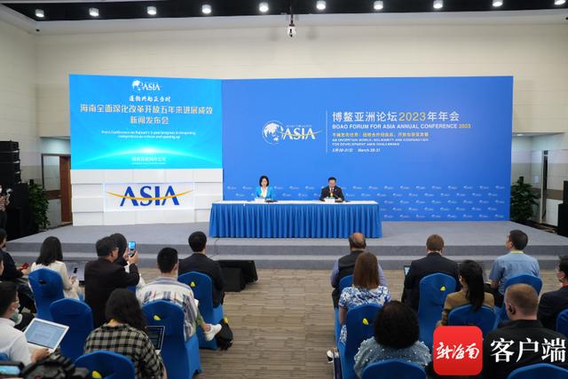 “蓬勃兴起正当时——海南全面深化改革开放五年来进展成效”首场新闻发布会现场。记者 李昊 摄