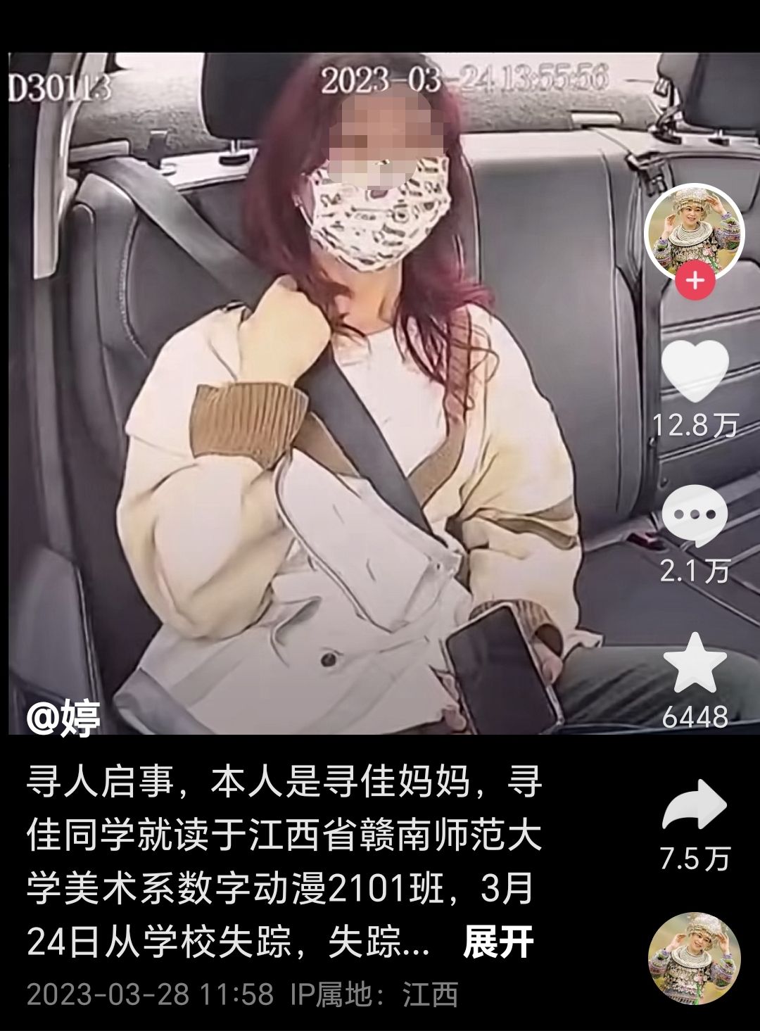 阿林告诉记者,3月25日下午,由于多次联系不到寻某,家人联系了她室友,才得知寻某前一天离开学校后,已经一夜未归,且无法联系上。焦急的家人很快从湖南浏阳赶赴江西赣州,在路上时才接到学校电话,被告知寻某失踪。