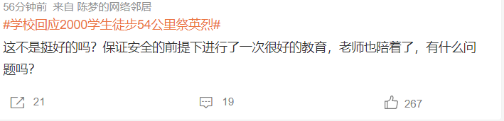 许多网友表示:54公里?????5公里就可以了,54公里对于学生来说太长了