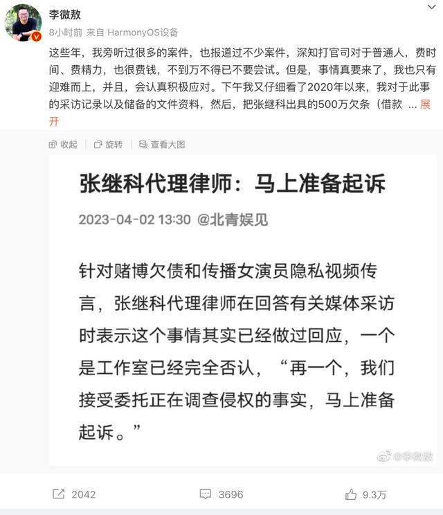 李微敖当时就火了:“我是在2020年知道张继科先生此事的,并且做过比较长时间的调查采访,只不过因为我习惯性地拖延懒散,一直未有写完文章。”