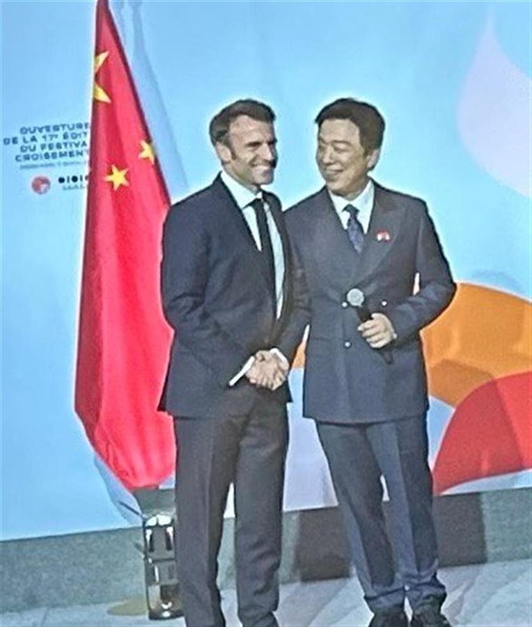 4月5日晚,刚刚抵达中国进行国事访问的法国总统马克龙现身北京一家美术馆,参加第17届“中法文化之春”艺术节开幕式。活动上,担任揭幕嘉宾的马克龙与本届艺术节的宣传大使、中国著名演员黄渤同台亮相,互动频频,为开幕式奉上诸多亮点(下图)。