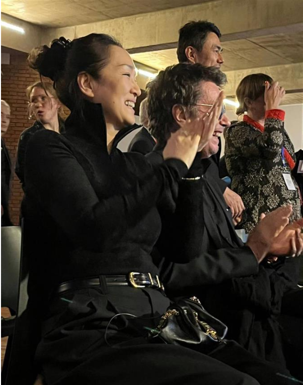而活动现场网友发布的图片显示,著名演员巩俐与爱人让-米歇尔·雅尔也坐在观众席(下图),为这个中法文化交流的重要活动站台捧场。