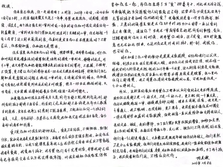 她给张波写道,“你在心里说发自内心的忏悔,想要赎罪。我希望你明白,对于你和叶诚尘来说最好的赎罪,就是坦然接受死刑。”