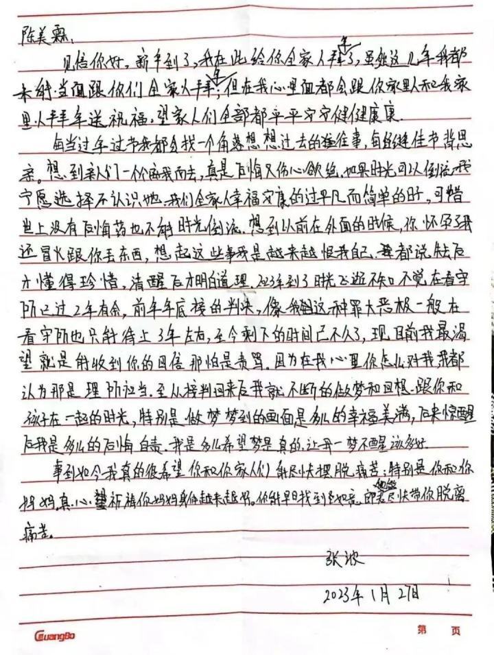 短短27天,陈美霖收到前夫张波三封亲笔信,落款是重庆市南岸看守所。