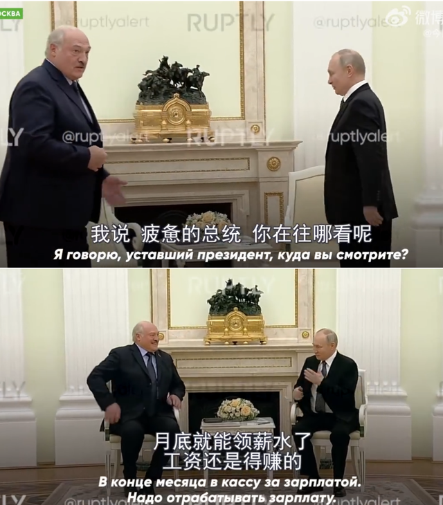 综合塔斯社、俄新社等俄媒当地时间6日报道,当晚会谈在一个轻松幽默的氛围下开始,卢卡申科称普京是一个“疲惫的总统”,普京则调侃道“到月底就能结工资了,钱还是要赚的”,逗得卢卡申科哈哈大笑。
