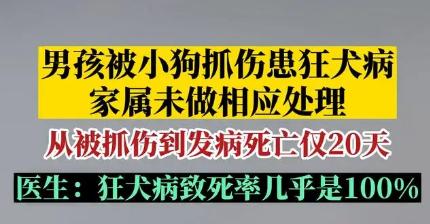 广西南宁一名男孩因被一只狗狗抓挠而感染了狂犬病,由于其家人对此视而不见,20天后死亡。