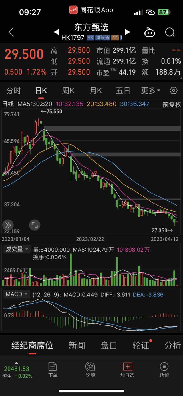 值得注意的是,今年1月初,东方甄选股价一度冲破75港元,按照当时股价计算,这笔股权激励足足20亿元人民币。