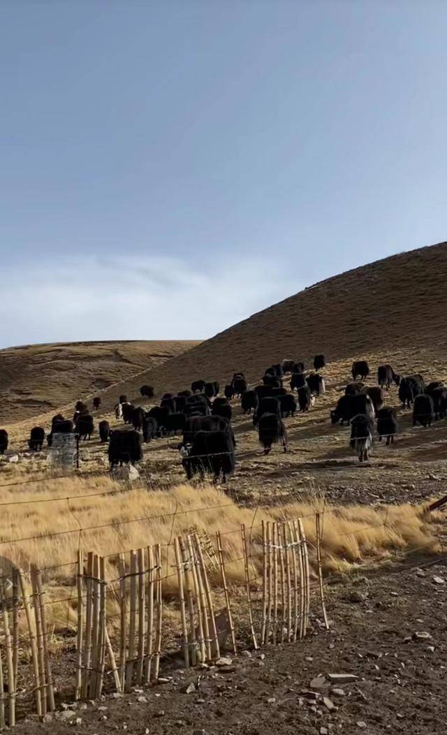 如果算上整个操作过程,时间要长得多。牦牛之前在山里的秋季牧场,她的父母把它们赶到离省道近的冬季牧场,再给它们戴耳环、做标记,最后送过去,总共花了五六天。