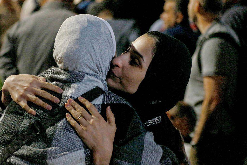 当地时间2024年4月24日,约旦安曼,从苏丹撤离的约旦公民乘坐军用飞机抵达军用机场,一个撤离后的拥抱。视觉中国 图